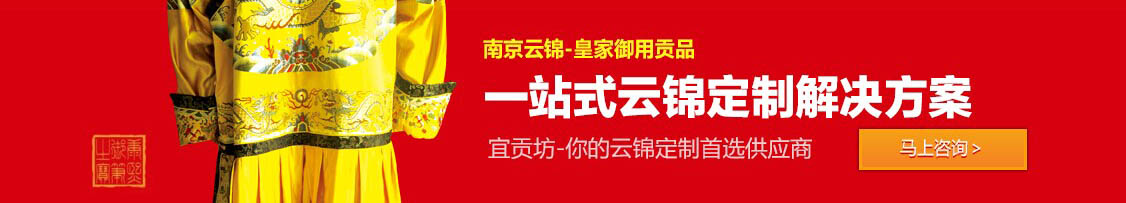 南京宜貢坊云錦文化科技有限公司成立于二OO一年,場地面積10000㎡,致力于做中國知名的云錦,宜貢坊云錦文化科技有限公司座落于江寧開發(fā)區(qū)。做為江蘇云錦文化科技品牌之一,南京宜貢坊擁有雄厚的技術力量和實力,現(xiàn)有大型傳統(tǒng)花木樓織機幾十臺,織造師、研究設計人員數(shù)百人。公司擁有直屬北京、深圳、上海辦事處和近千家緊密經(jīng)銷商、合作商;產(chǎn)品在南京中央商場、新百、上海八百伴、上海友誼商場,泰州金鷹等全國多家大型商場均有專柜。